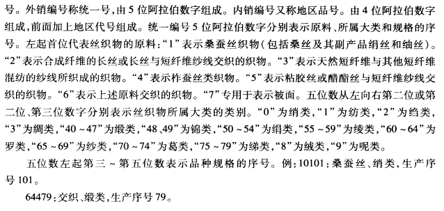 为了便于生产、销售和进行技术交流,丝织物按其组织结构、加工工艺、使用原料及外观形态和用途等特点,给予每一个品种以恰当的命名,并根据分类状况编排一个代号。
