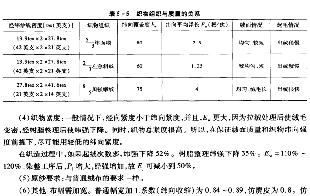 ②斜纹绒和哔叽绒:斜纹绒和哔叽绒为斜纹组织或斜纹变化组织。一般多为单面绒布,即织物仅仅一面拉绒,而另一面仍保持原有坯布织物的固有特点。