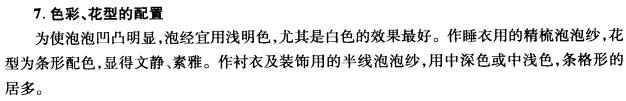 (色织)泡泡纱是采用张力差异较大的两种经纱(泡经与地经)相间排列所织成的平纹织物。织物表面呈现为规律性的、犹如泡泡的波浪状皱纹所形成的纵条子。泡泡凸起,富有立体感。泡泡纱泡形“清晰、均匀、稳定”。泡经张力小,地经张力大,其差异程度较大,织造时要用双经轴织造。