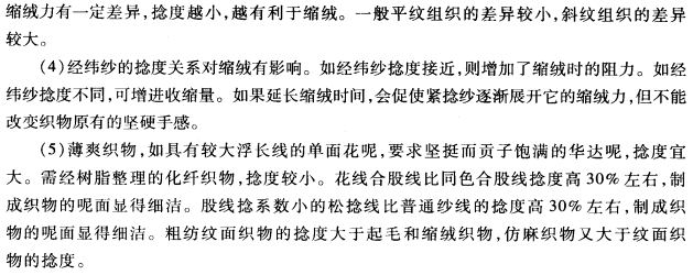 (4)品质差且短毛含量高的纱线大于短毛含量低且品质好的纱线捻度。