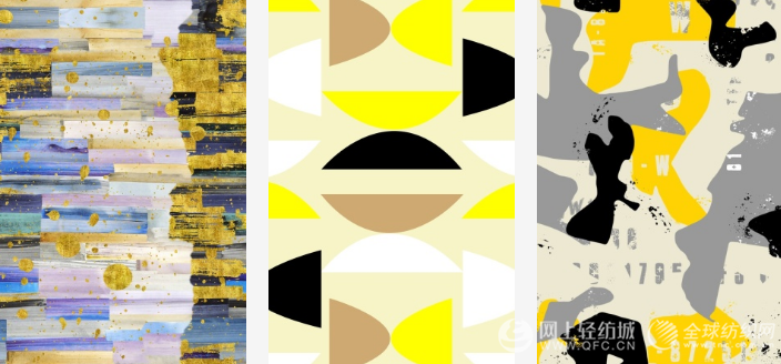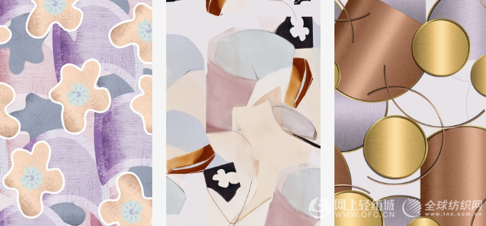 色块造型更加精致,契合贴心舒适趋势中的精致色块主题。抽象简约风格灵感源自极简室内装饰,裸色和中性色构成的柔和配色让薄透几何形、手绘几何形、重叠几何形、抽象几何形呈现经典极简风格。此类印花适合打造休闲居家单品。