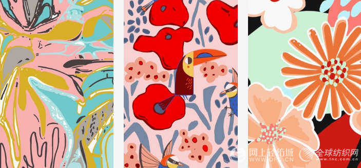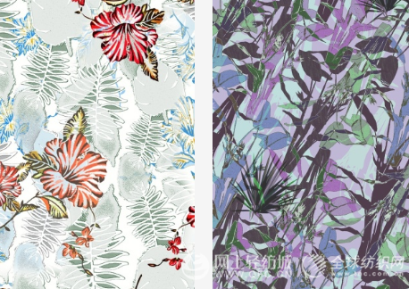 热带印花持续升温,同时,街头风势头减弱,度假风主导着年轻市场的趋势。手绘夏威夷花朵、东方异国花卉等异域植物图案在T台上涌现,契合了大众审美。在热带印花风潮成为主流趋势前,投资经典棕榈树叶的热带风格图案时应保持谨慎。
