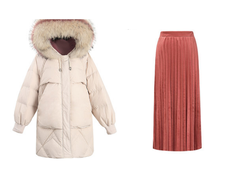 羽绒服+长裙