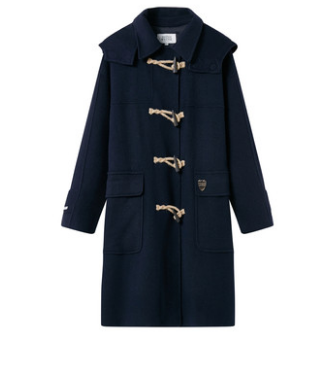 牛角扣分连帽和领子款,喜欢学院风的妹子可以选择带帽款,而喜欢知性气质一点的妹子选择无帽款就ok啦!再加之近两年JK制服热度比较高,冬季搭配牛仔扣大衣自然是必不可少。