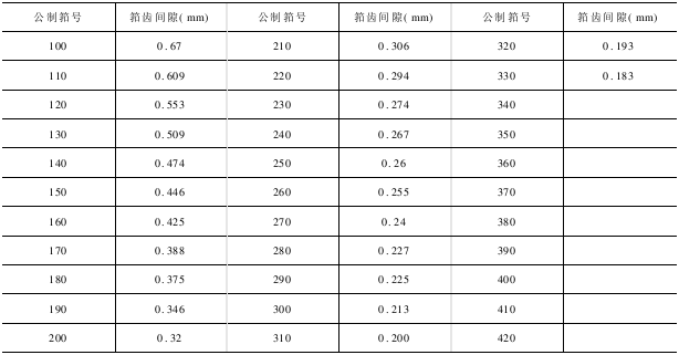 2.各种筘号的筘片间隙