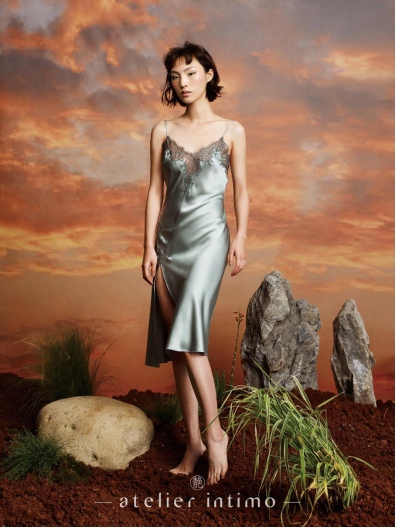 蔓延系列真丝吊带裙采用民国旗袍式侧开衩设计,将东方女性的独特韵味在踱步间尽显开来。创新19姆米真丝拼接Leavers手工蕾丝,是面料界的珠联璧合。前片立体有致,后背性感系带,彰显东方女性的优雅性感。同时,香槟、焦糖加上牛油果绿满足当代女性对于经典与时尚的不同品味需求。