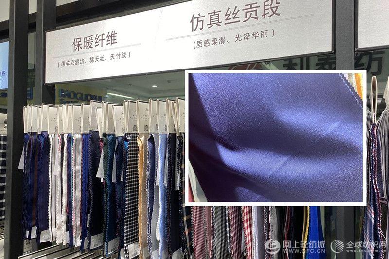 江苏占姆士纺织有限公司经营中高档男女衬衫面料,门市部的衬衫面料有全棉系列、再生纤维系列、保暖纤维系列、仿真丝贡缎纤维系列等。“我们每年分两季推出新品。这次针对秋冬我们推出了含有羊毛纤维、棉天丝、天竺绒的保暖纤维面料,不仅保暖性好面料还富有弹性。”占姆士店负责人黄佳文说道。