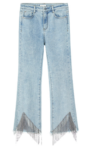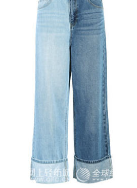 今年很流行这样的拼接牛仔阔腿裤,色系不同&面料不同的拼接都能增强设计感。