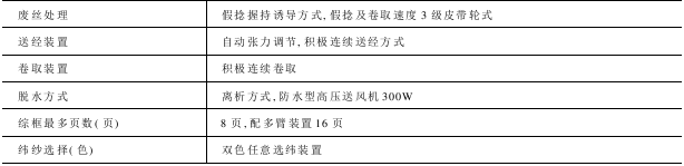 开口装置 本机可加装多臂机,扩大了织机的使用范围,可织造高质量的织物。多16片综框。适应多臂机的织造转速为550~600r/min。