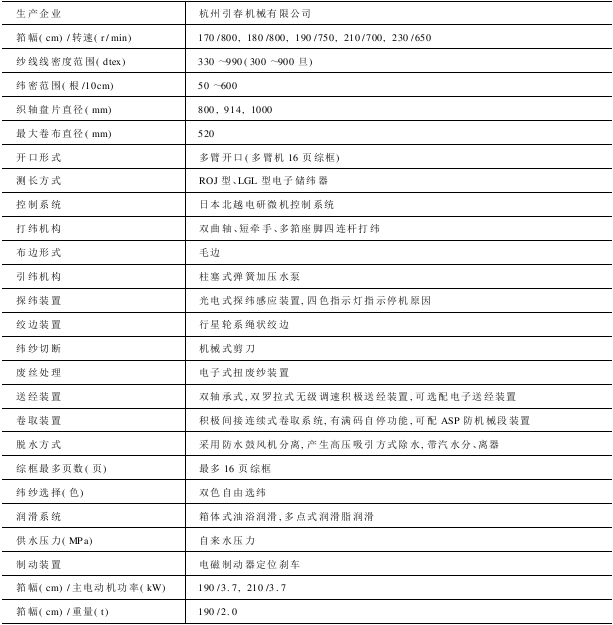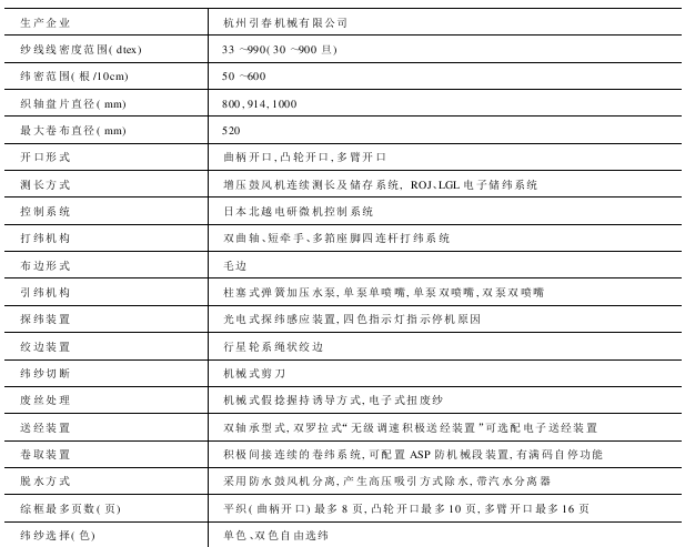 适织品种 适用于织造各种人造纤维,合成纤维为原料的疏水性织物。合成纤维织物中包括复丝,加捻丝和免浆用丝,织物重量范围为40~500g/m 。纬丝范围33~990dtex(30~900旦)。双泵双喷机可适合两根纤度差异较大的织造。