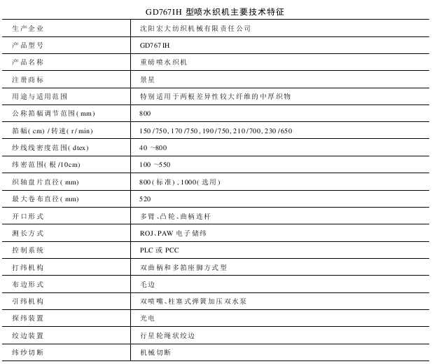 GD767型系列喷水织机是沈阳宏大纺织机械有限责任公司在引进日本日产公司LW54型喷水织机设计制造技术并合作生产GD761型喷水织机基础上自主开发的新机型。