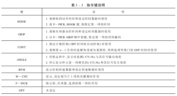 (3)纬丝选择控制:由纬丝选择指令装置,进行二色或三色纬丝的选择指令,进行纬丝的选择。