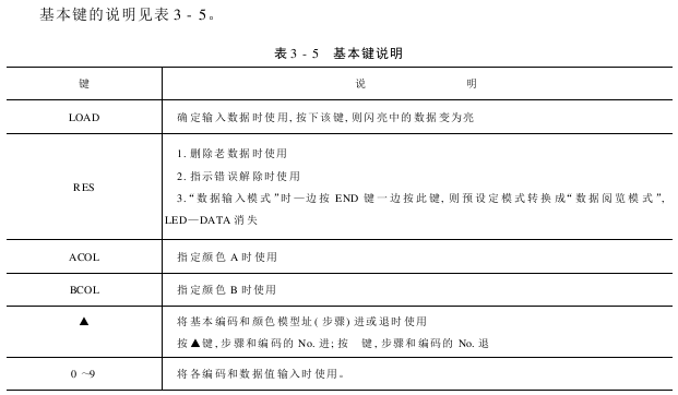 接近开关的调整:颜色转换信号由接近开关TS1、CA2、CB3输出。TS为定时基准用开关,CA、CB为颜色切换用接近开关。接近开关与凸轮的间隙调整为0.5±0.3mm;凸轮一旦靠近接近开关,其相对应的LED灯亮。储纬器的操作,包括指棒、压纱器及旋转阀等的参数设置或修改都在储纬器控制箱上的预设器上操作。预设器上有指令键、颜色数据设定键、基本键等3种,计30个。