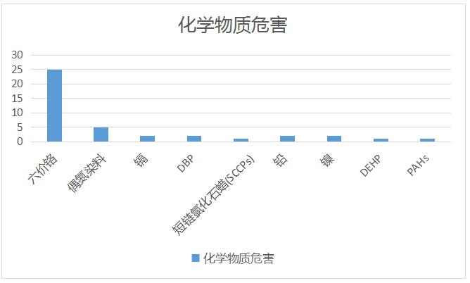 2018年纺织品类产品涉及到的化学物质主要包括:六价铬、镍、镉、DBP、偶氮染料,PAHs,DEHP等物质。