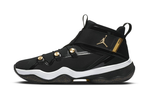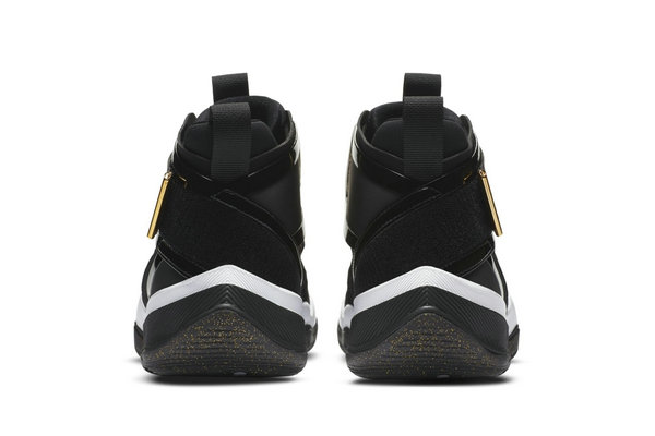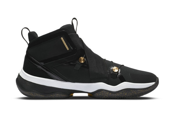 鞋款以代表低调奢华的黑金搭配为主调,看上去外观与 Air Jordan 11 颇有几分相似之处,大面积的黑色基础上在细节中加入金色点缀,就连外底都有碎金装扮。