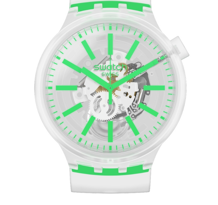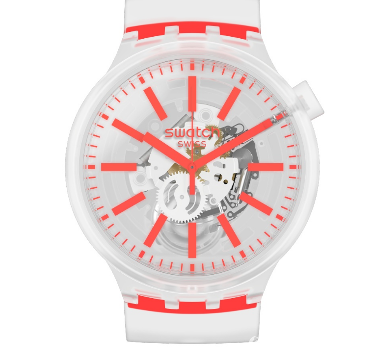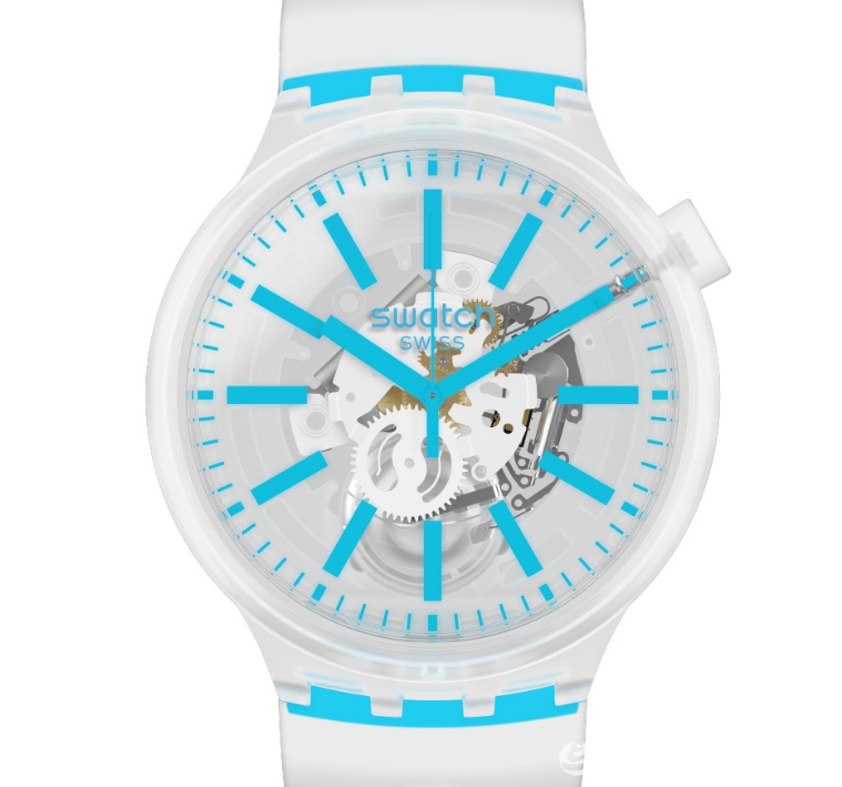 斯沃琪BIG BOLD JELLY 腕表的创新历程,自新年伊始延续至今。全新 BIG BOLD 系 列腕表采用半透明表带搭配全透明表盘,让精密机芯构造与核心制表工艺凝聚于腕间, 并注入全新夏日耀目炫彩。霓虹荧绿、电光亮黄、吸睛橙调与天青湛蓝,一系列夺目配 色提升腕表通透质感,散发无尽能量与活力。该款单品拥有直径达47 毫米的超大表盘, 尽显率性洒脱、独树一帜的都市新潮魅力。