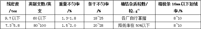 精梳棉纱的质量要求较高,其棉结杂质粒数要比同样线密度梳棉棉纱的粒数少一半以上,因为精梳机可排除相当数量的棉结杂质,尤其对杂质排除率达50%~60%,对棉结可排除10%~20%。