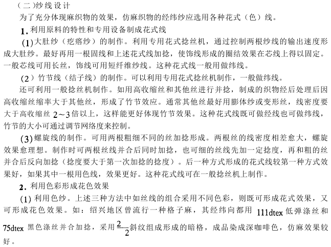 一、化纤仿麻织物主要结构参数设计