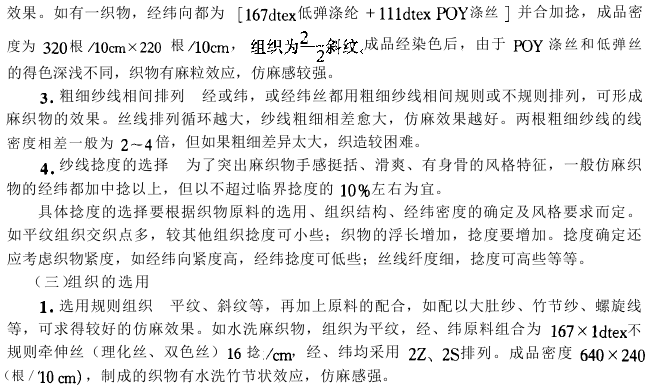 开发充分体现麻织物效果的面料,原料选配尤为重要。