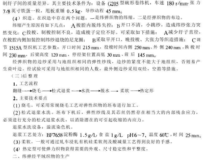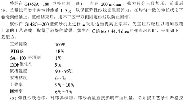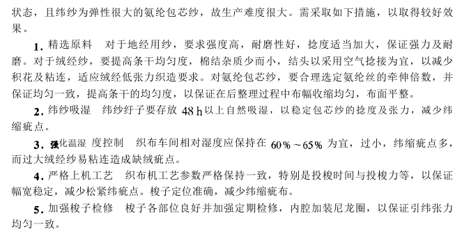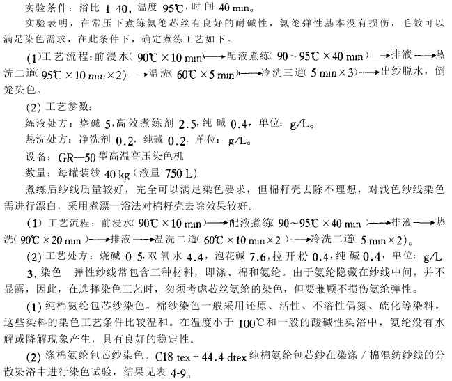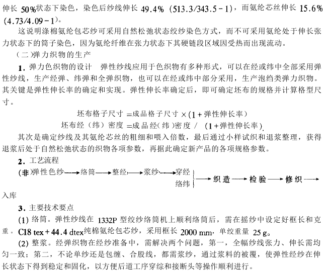 它适合多品种、小批量的色织特点,但加工工艺流程长、成本较高。氨纶包芯纱属本色纱线,用于色织生产需进行煮漂染色。