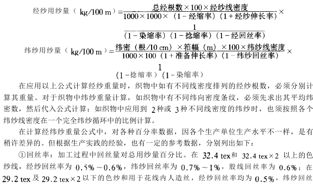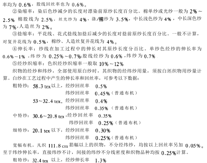 (二)原纱要求