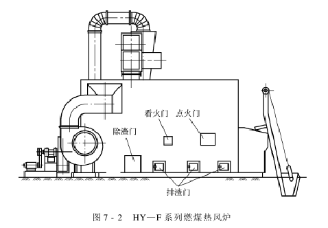 HY—F系列燃煤热风炉是一种新型高效节能、低污染的热源设备,如图7-2所示,在新疆及内地均有广泛使用。