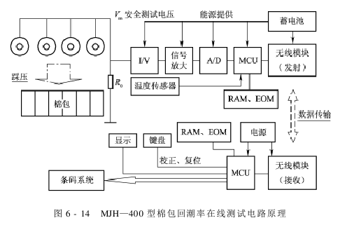 以郑州棉麻工程技术设计研究所研制的MJH—400型棉包回潮率在线测试装置为例进行介绍。