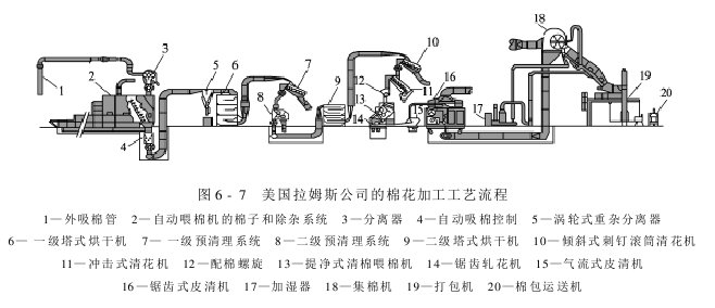 图6-7所示为美国拉姆斯公司的棉花加工工艺流程。