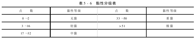将两张铝箔上的粘点合计,根据表5-6进行黏性分级标准判断。