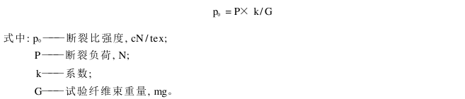 纤维束的遮光量由光学系统确定,断裂负荷由力传感器检出,断裂比强度由下式计算。