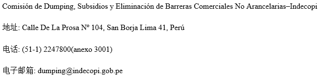 利益相关方可于本公告发布后的30个工作日内以登陆网站(网址:https://www.indecopi.gob.pe/en/mesadepartes)或通信的方式(地址见下方)进行应诉登记、提交证据材料: