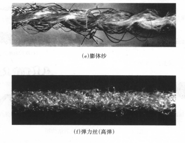 膨体纱:膨体纱是利用脯纶纤维的热收缩性(热塑性)加工的、具有高的松软度的丰满的纱线。将低收缩性能与高收缩性能的脂纶纤维按一定的比例混合制成纱线,然后松弛热定形。这样,高收缩纤维收缩大,形成纱芯,低收缩纤维收缩小,被挤压在表面形成因弧,从而制得蓬松的纱线。