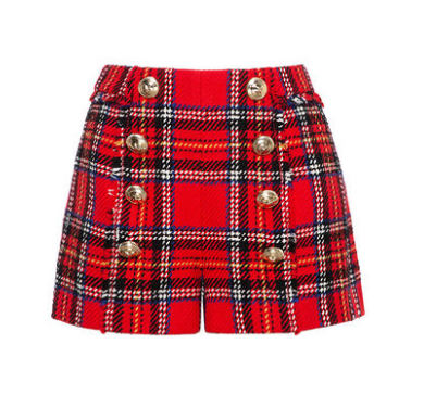 红色下装同样能满足假日和日常的两不误。纯色的裤装是难以hold住的,所以格纹当属人气之选。原本含蓄、成熟、优雅的元素,因为红色的加入,反而洋溢起了青春感。