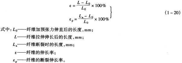 3.新裂伸长 纤维拉伸时产生的伸长占原来长度的百分率称为伸长率。纤维拉伸至断裂时的伸长率称为断裂伸长率,它表示纤维承受拉伸变形的能力。其计算式为: