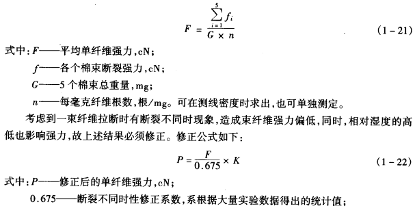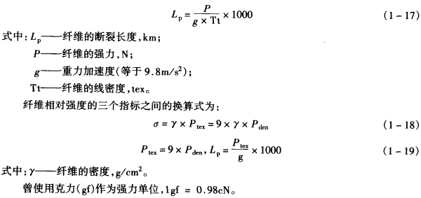 根据这些换算式可以看出,相同的断裂强度和断裂长度,其断裂应力还随纤维的密度而异,只有当纤维密度相同时,断裂强度和断裂长度才具有可比性。