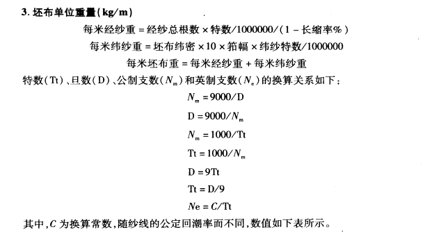 (四)计算上机密度及坯布单位重量