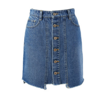 高腰A字裙毛边牛仔裙