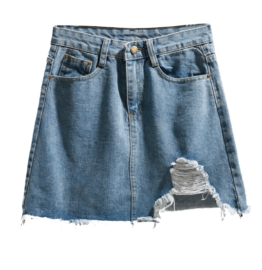 不规则破洞毛边牛仔半身裙