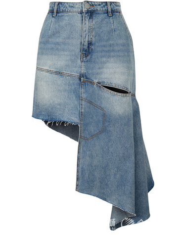 生活太多条条框框,在常规中突破自己,不如就用这条不对称牛仔裙彰显你的时尚态度吧。版型是包臀的A字版型,正好修饰不完美臀型,配上的高腰设计正是拉长双腿利器,腰部和下摆的故意错位,正好在下摆形成一个不完整的三角形,不规则!才够味!