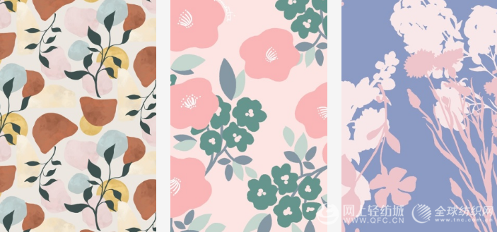 色块造型更加精致,契合贴心舒适趋势中的精致色块主题。抽象简约风格灵感源自极简室内装饰,裸色和中性色构成的柔和配色让薄透几何形、手绘几何形、重叠几何形、抽象几何形呈现经典极简风格。此类印花适合打造休闲居家单品。