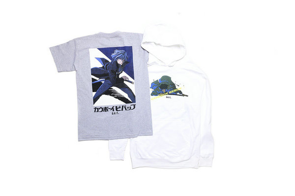 BAIT 与 SUNRISE 出品的《星际牛仔》联动发布了胶囊系列,该系列包含了灰色、勃艮第红、白色和黑色的 T 恤、连帽衫及圆领毛衣。