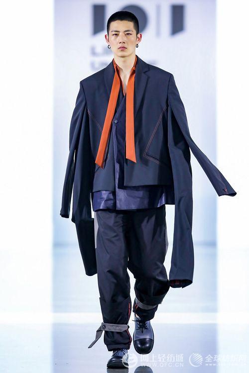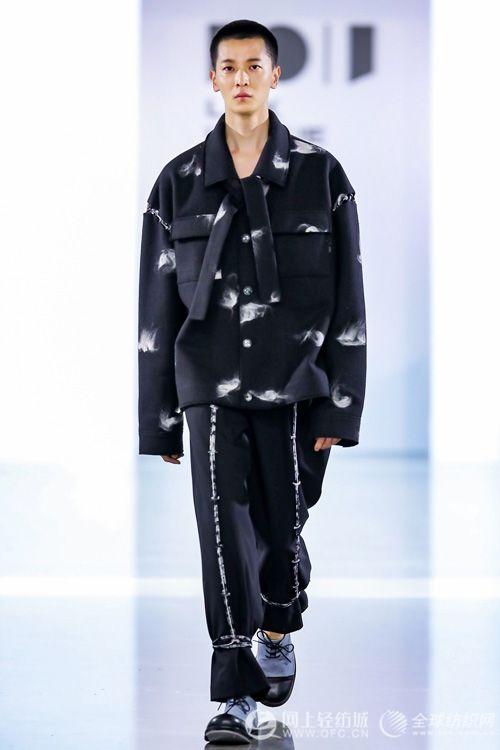 月落西下以西方剪裁的版型呈现,拉长了的轮廓线条营造出如阴影般的体积感。日起东升则在款式上运用了中式立领,偏襟以及创新中山服等来突出东方气韵。但不忘与前篇西方廓形相呼应,结构上增添了凸显时尚元素的衬里外露,结构外翻,前领交叉穿插,叠领,套袖以及中西方款式叠穿,来表达两种文化注定形成的一种互相渗透、相辅相成的和谐关系。细节上追求的不对称设计,裤腰错位与双扣排列巧妙地渲染出了光影的空间感。