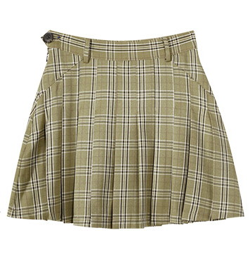 绿色短裙非常吸睛,裙子上的纽扣让它看起来不会很单调。可以选择搭配白色的上衣搭配在一起就够清新自然了。