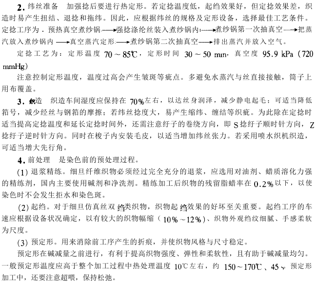 真丝织物具有优美的外观,珍珠般柔和的光泽,鲜明的发色效果,且手感柔软,风格爽滑,丝呜优雅,穿着舒适,成为人们仿效的榜样。但其缺点抑制了人们对真丝织物的需求,也影响了丝绸工业的发展。