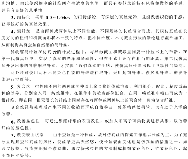 蚕丝被誉为纤维中的女王,说明它具有很多优秀的性能。仿真丝的目标,就是用人工手段使纤维具有真丝的优良特性。