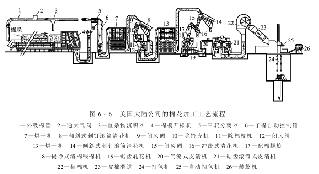 图6-7所示为美国拉姆斯公司的棉花加工工艺流程。